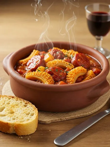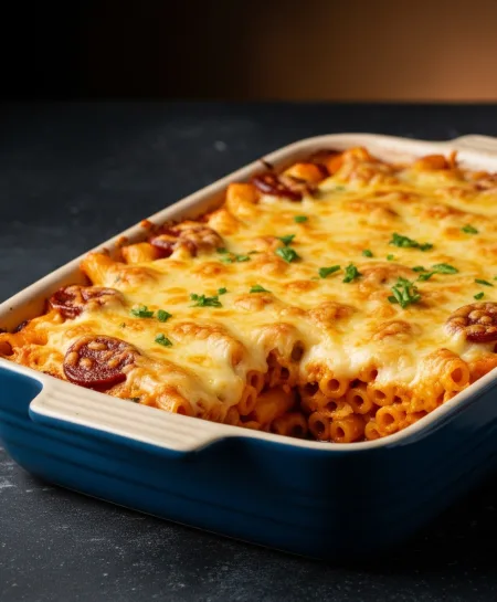 Macarrones Gratinados con Chorizo y Tomate.