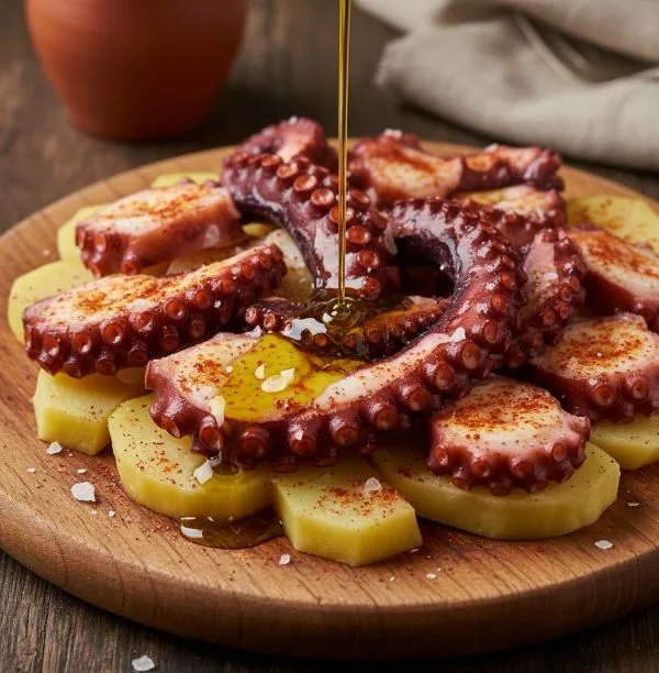 Servido tradicionalmente en un plato de madera, que ayuda a mantener la temperatura y a absorber el exceso de humedad, el pulpo a la gallega es un plato social. Invita a compartir, a reunirse alrededor de la mesa con una buena copa de vino y a disfrutar de una conversación animada. Cada bocado es un viaje a las costas gallegas, una experiencia que combina la suavidad del pulpo, la cremosidad de la patata y la intensidad del aliño. Prepararlo en casa no es solo cocinar, es recrear un pedazo de la cultura y la historia de España.